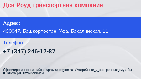 Дсв Роуд, транспортная компания по адресу 450047, Башкортостан, Уфа, Бакалинская, 11 в дальнейшем Организация, размещена в следующих категориях: