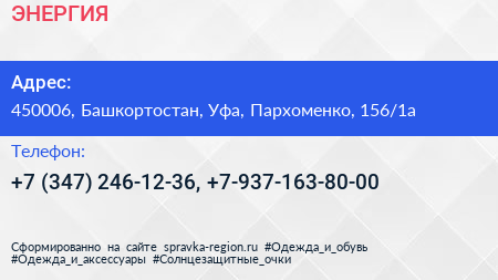 ЭНЕРГИЯ по адресу 450006, Башкортостан, Уфа, Пархоменко, 156/1а в дальнейшем Организация, размещена в следующих категориях:
