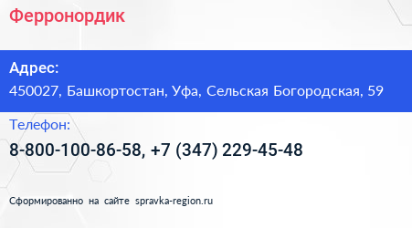 Ферронордик по адресу 450027, Башкортостан, Уфа, Сельская Богородская, 59 в дальнейшем Организация, размещена в следующих категориях: