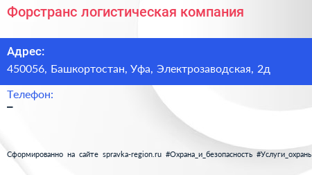 Форстранс, логистическая компания по адресу 450056, Башкортостан, Уфа, Электрозаводская, 2д в дальнейшем Организация, размещена в следующих категориях: