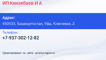 ИП Кинзябаев И.А. по адресу 450533, Башкортостан, Уфа, Ключевая, 2 в дальнейшем Организация, размещена в следующих категориях: