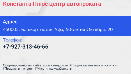 Константа Плюс, центр автопроката по адресу 450005, Башкортостан, Уфа, 50-летия Октября, 20 в дальнейшем Организация, размещена в следующих категориях:
