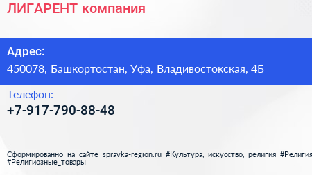 ЛИГАРЕНТ, компания по адресу 450078, Башкортостан, Уфа, Владивостокская, 4Б в дальнейшем Организация, размещена в следующих категориях: