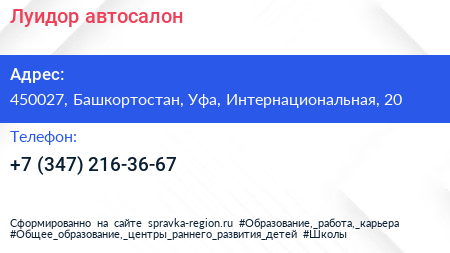 Луидор, автосалон по адресу 450027, Башкортостан, Уфа, Интернациональная, 20 в дальнейшем Организация, размещена в следующих категориях: