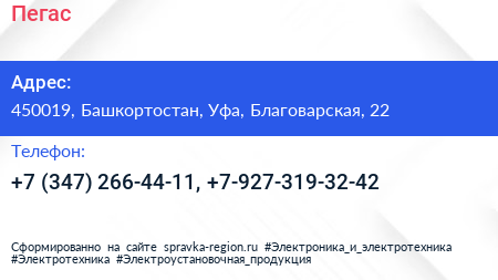 Пегас по адресу 450019, Башкортостан, Уфа, Благоварская, 22 в дальнейшем Организация, размещена в следующих категориях: