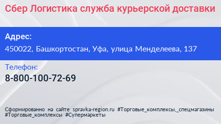 Сбер Логистика, служба курьерской доставки по адресу 450022, Башкортостан, Уфа, улица Менделеева, 137 в дальнейшем Организация, размещена в следующих категориях: