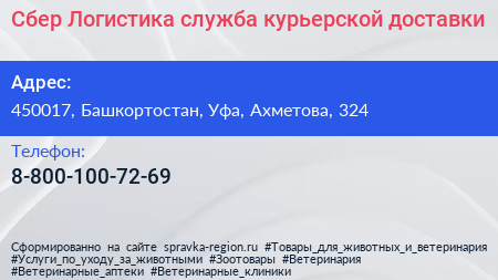 Сбер Логистика, служба курьерской доставки по адресу 450017, Башкортостан, Уфа, Ахметова, 324 в дальнейшем Организация, размещена в следующих категориях: