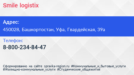 Smile logistix по адресу 450028, Башкортостан, Уфа, Гвардейская, 39а в дальнейшем Организация, размещена в следующих категориях:
