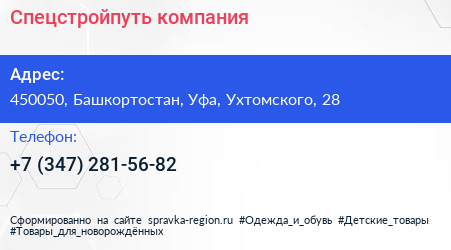 Спецстройпуть, компания по адресу 450050, Башкортостан, Уфа, Ухтомского, 28 в дальнейшем Организация, размещена в следующих категориях: