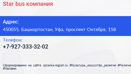 Star-bus, компания по адресу 450055, Башкортостан, Уфа, проспект Октября, 158 в дальнейшем Организация, размещена в следующих категориях:
