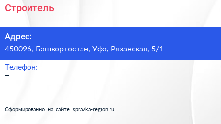 Строитель по адресу 450096, Башкортостан, Уфа, Рязанская, 5/1 в дальнейшем Организация, размещена в следующих категориях: