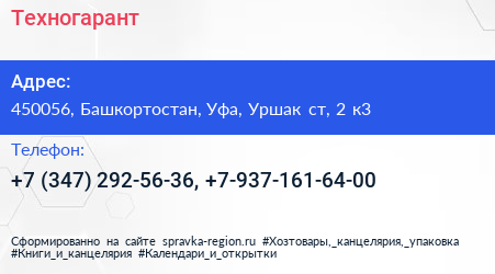 Техногарант по адресу 450056, Башкортостан, Уфа, Уршак ст, 2 к3 в дальнейшем Организация, размещена в следующих категориях: