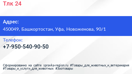 Тлк-24 по адресу 450049, Башкортостан, Уфа, Новоженова, 90/1 в дальнейшем Организация, размещена в следующих категориях: