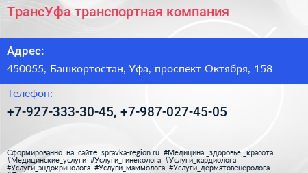 ТрансУфа, транспортная компания по адресу 450055, Башкортостан, Уфа, проспект Октября, 158 в дальнейшем Организация, размещена в следующих категориях: