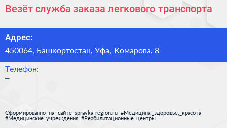 Везёт, служба заказа легкового транспорта по адресу 450064, Башкортостан, Уфа, Комарова, 8 в дальнейшем Организация, размещена в следующих категориях:
