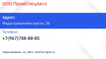 ООО «ПромСпецАвто» по адресу Индустриальное шоссе, 26 в дальнейшем Организация, размещена в следующих категориях: