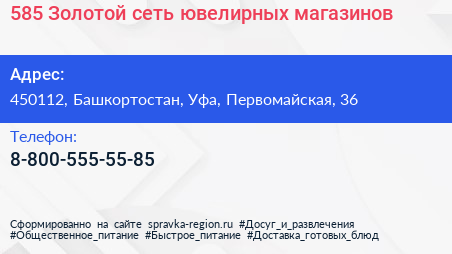 585*Золотой, сеть ювелирных магазинов по адресу 450112, Башкортостан, Уфа, Первомайская, 36 в дальнейшем Организация, размещена в следующих категориях: