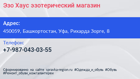 Эзо Хаус, эзотерический магазин по адресу 450059, Башкортостан, Уфа, Рихарда Зорге, 8 в дальнейшем Организация, размещена в следующих категориях:
