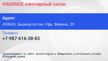 KRASNOE, ювелирный салон по адресу 450043, Башкортостан, Уфа, Ферина, 29 в дальнейшем Организация, размещена в следующих категориях: