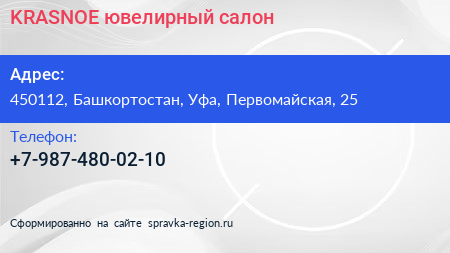 KRASNOE, ювелирный салон по адресу 450112, Башкортостан, Уфа, Первомайская, 25 в дальнейшем Организация, размещена в следующих категориях: