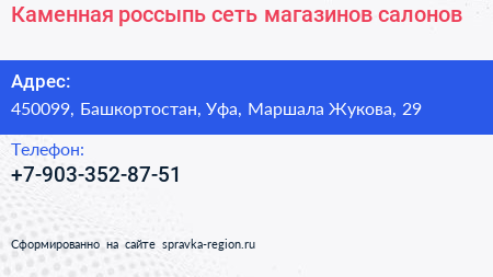 Каменная россыпь, сеть магазинов-салонов по адресу 450099, Башкортостан, Уфа, Маршала Жукова, 29 в дальнейшем Организация, размещена в следующих категориях: