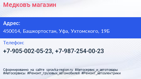 Медковъ, магазин по адресу 450014, Башкортостан, Уфа, Ухтомского, 19Б в дальнейшем Организация, размещена в следующих категориях: