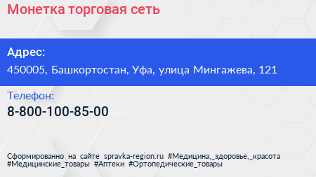Монетка, торговая сеть по адресу 450005, Башкортостан, Уфа, улица Мингажева, 121 в дальнейшем Организация, размещена в следующих категориях: