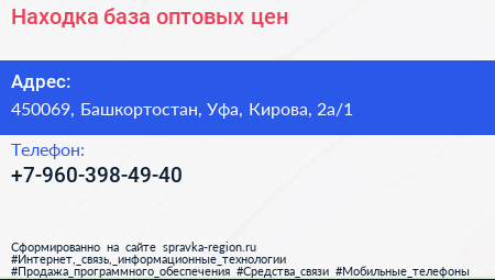Находка, база оптовых цен по адресу 450069, Башкортостан, Уфа, Кирова, 2а/1 в дальнейшем Организация, размещена в следующих категориях: