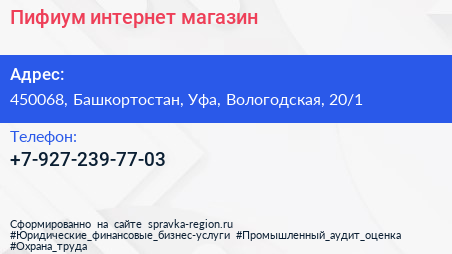 Пифиум, интернет-магазин по адресу 450068, Башкортостан, Уфа, Вологодская, 20/1 в дальнейшем Организация, размещена в следующих категориях: