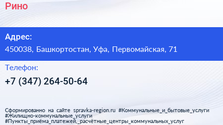Рино по адресу 450038, Башкортостан, Уфа, Первомайская, 71 в дальнейшем Организация, размещена в следующих категориях: