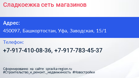 Сладкоежка, сеть магазинов по адресу 450097, Башкортостан, Уфа, Заводская, 15/1 в дальнейшем Организация, размещена в следующих категориях: