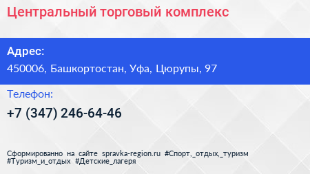 Центральный, торговый комплекс по адресу 450006, Башкортостан, Уфа, Цюрупы, 97 в дальнейшем Организация, размещена в следующих категориях: