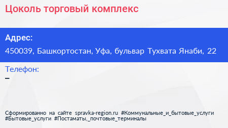 Цоколь, торговый комплекс по адресу 450039, Башкортостан, Уфа, бульвар Тухвата Янаби, 22 в дальнейшем Организация, размещена в следующих категориях:
