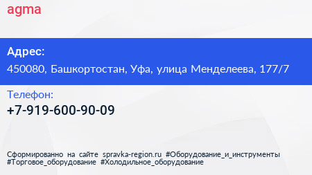 agma по адресу 450080, Башкортостан, Уфа, улица Менделеева, 177/7 в дальнейшем Организация, размещена в следующих категориях: