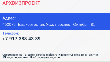 АРХВИЗПРОЕКТ по адресу 450075, Башкортостан, Уфа, проспект Октября, 81 в дальнейшем Организация, размещена в следующих категориях: