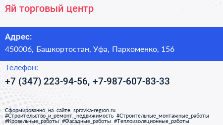 Яй, торговый центр по адресу 450006, Башкортостан, Уфа, Пархоменко, 156 в дальнейшем Организация, размещена в следующих категориях: