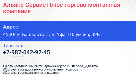 Альянс Сервис Плюс, торгово-монтажная компания по адресу 450049, Башкортостан, Уфа, Шаумяна, 32Б в дальнейшем Организация, размещена в следующих категориях: