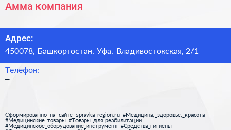 Амма, компания по адресу 450078, Башкортостан, Уфа, Владивостокская, 2/1 в дальнейшем Организация, размещена в следующих категориях: