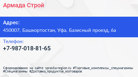Армада-Строй по адресу 450007, Башкортостан, Уфа, Базисный проезд, 6а в дальнейшем Организация, размещена в следующих категориях: