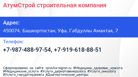 АтумСтрой, строительная компания по адресу 450074, Башкортостан, Уфа, Габдуллы Амантая, 7 в дальнейшем Организация, размещена в следующих категориях: