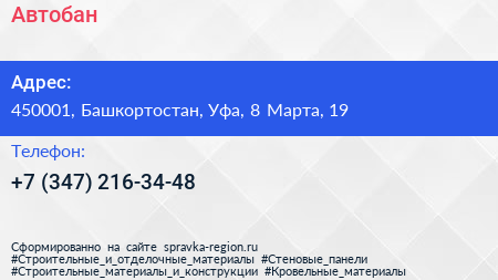 Автобан по адресу 450001, Башкортостан, Уфа, 8 Марта, 19 в дальнейшем Организация, размещена в следующих категориях: