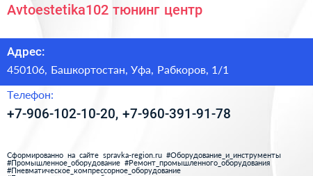 Avtoestetika102, тюнинг-центр по адресу 450106, Башкортостан, Уфа, Рабкоров, 1/1 в дальнейшем Организация, размещена в следующих категориях: