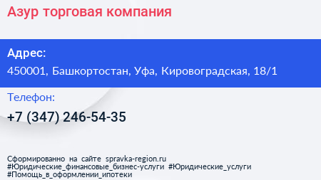 Азур, торговая компания по адресу 450001, Башкортостан, Уфа, Кировоградская, 18/1 в дальнейшем Организация, размещена в следующих категориях: