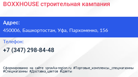 BOXXHOUSE, строительная кампания по адресу 450006, Башкортостан, Уфа, Пархоменко, 156 в дальнейшем Организация, размещена в следующих категориях: