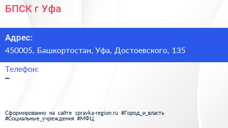 БПСК, г. Уфа по адресу 450005, Башкортостан, Уфа, Достоевского, 135 в дальнейшем Организация, размещена в следующих категориях: