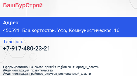 БашБурСтрой по адресу 450591, Башкортостан, Уфа, Коммунистическая, 16 в дальнейшем Организация, размещена в следующих категориях: