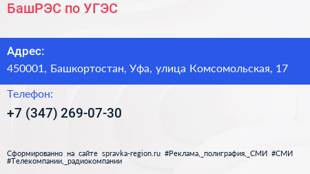 БашРЭС по УГЭС по адресу 450001, Башкортостан, Уфа, улица Комсомольская, 17 в дальнейшем Организация, размещена в следующих категориях: