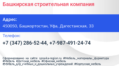 Башкирская строительная компания по адресу 450050, Башкортостан, Уфа, Дагестанская, 33 в дальнейшем Организация, размещена в следующих категориях: