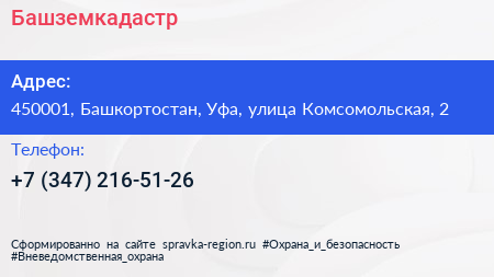 Башземкадастр по адресу 450001, Башкортостан, Уфа, улица Комсомольская, 2 в дальнейшем Организация, размещена в следующих категориях: