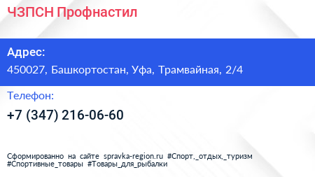 ЧЗПСН-Профнастил по адресу 450027, Башкортостан, Уфа, Трамвайная, 2/4 в дальнейшем Организация, размещена в следующих категориях: